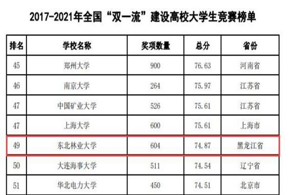 東北林業(yè)大學連續(xù)四年蟬聯全國農林類本科院校大學生競賽排行榜榜首