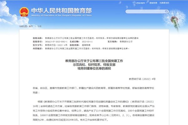 哈爾濱師范大學再獲批2個“全國黨建工作樣板支部”