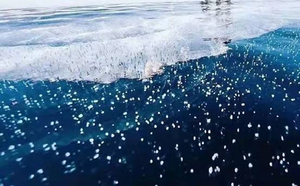 “冰泡”是由湖底植物釋放出的沼氣(甲烷)在上升過程中,因極寒氣溫導(dǎo)致冰封速度過快,被“鎖”在冰層之中而形成。目前,全世界僅有3個(gè)著名的冰泡湖,北極漠河冰泡湖是中國(guó)最北唯一的“冰泡奇觀”。觀音山“冰泡”晶瑩剔透、造型奇特、惟妙惟肖,有的形似“飛碟”一飛沖天,有的形似“珊瑚”美輪美奐,有的形似“觀音”端坐蓮臺(tái)。形態(tài)各異的“冰泡”形成一幅幅精美的冰雪藝術(shù)畫卷,成為漠河冬季最火爆的網(wǎng)紅打卡地。