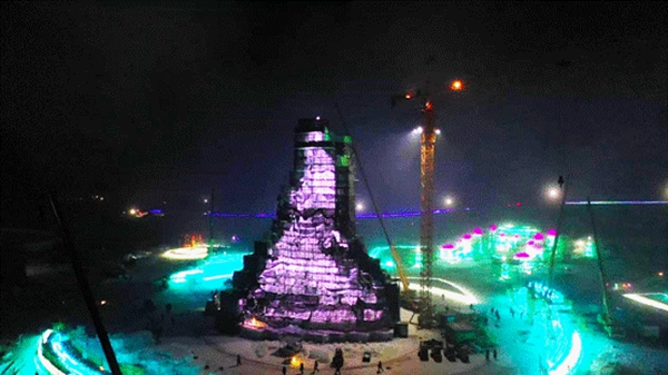 規(guī)模最大的冰景建筑“圣火之巔”完工,標(biāo)志著第二十三屆哈爾濱冰雪大世界開園進(jìn)入了倒計時階段。園區(qū)內(nèi)其他冰雪景觀正在緊張施工中,一個流光溢彩、炫麗耀眼的冰雪樂園,即將呈現(xiàn)在世人面前。