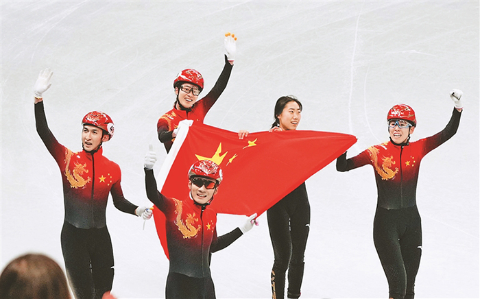 黑龍江日報5日訊(黑龍江日報全媒體特派記者董盈)5日晚,北京冬奧會短道速滑項目在首都體育館展開激烈角逐。在北京冬奧會的新增小項——混合團(tuán)體接力比賽中,由范可新、曲春雨、張雨婷、任子威、武大靖組成的中國隊,最終以2分37秒348的成績奪冠,為中國代表團(tuán)摘得北京冬奧會首金。