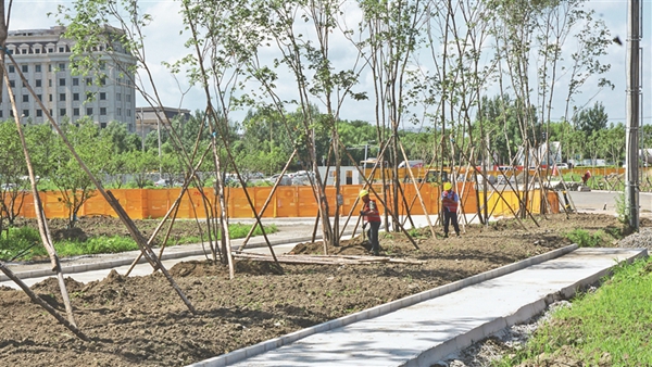 黑龍江日報訊(王藝凝 黑龍江日報全媒體記者薛婧 黑龍江日報全媒體見習(xí)記者董廣碩)近日,記者在哈爾濱新區(qū)的國貿(mào)中央廣場項目(一期)建設(shè)現(xiàn)場看到,工人們頂著炎炎烈日運送建筑材料、栽種路旁的各式綠植。經(jīng)過近一年的加緊施工,廣場已初具規(guī)模。據(jù)該項目負(fù)責(zé)人介紹,為盡早豐富居民的文化生活,工作人員正搶抓工期,預(yù)計比原計劃提前一年完成建設(shè),力爭今年年底前完工。