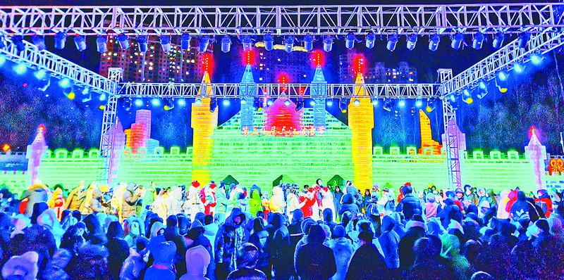 在雪地上潑雪、打鬧,人們身上沾著雪,頭上冒著汗,臉上帶著笑……這里是一片歡樂的海洋。變形金剛、小黃人、冰雪奇緣等以卡通動(dòng)漫為主題的冰雪景觀;還有引進(jìn)最新的滴水燈、玫瑰燈、瀑布燈、星光燈等LED燈光打造的大型打卡燈光秀;更有雪龍?zhí)柣?、碰碰車、雪人雕塑等娛樂?xiàng)目,這里已經(jīng)成為佳木斯市旅游打卡新地標(biāo)。