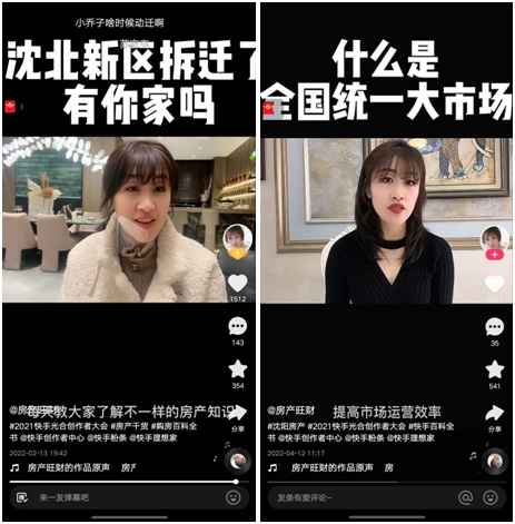 “現(xiàn)在整個(gè)沈陽房產(chǎn)市場30%的成交額都是由快手主播提供的,當(dāng)?shù)氐拈_發(fā)商們也會經(jīng)常和快手平臺、快手主播合作宣傳,平臺對于房產(chǎn)行業(yè)的約束,也帶著當(dāng)?shù)胤慨a(chǎn)市場向更加正規(guī)化方向發(fā)展”。