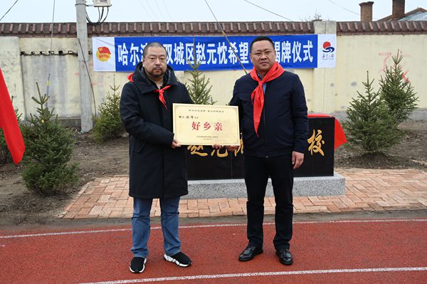 其父趙元忱,1959年加入中國(guó)共產(chǎn)黨,祖籍黑龍江省雙城農(nóng)豐鎮(zhèn)(原正白頭屯)。幼年因家貧失學(xué),解放后,在黨的關(guān)懷幫助下完成學(xué)業(yè)投身祖國(guó)建設(shè)。為銘記黨恩,回報(bào)家鄉(xiāng),委托其子捐建此所希望學(xué)校。