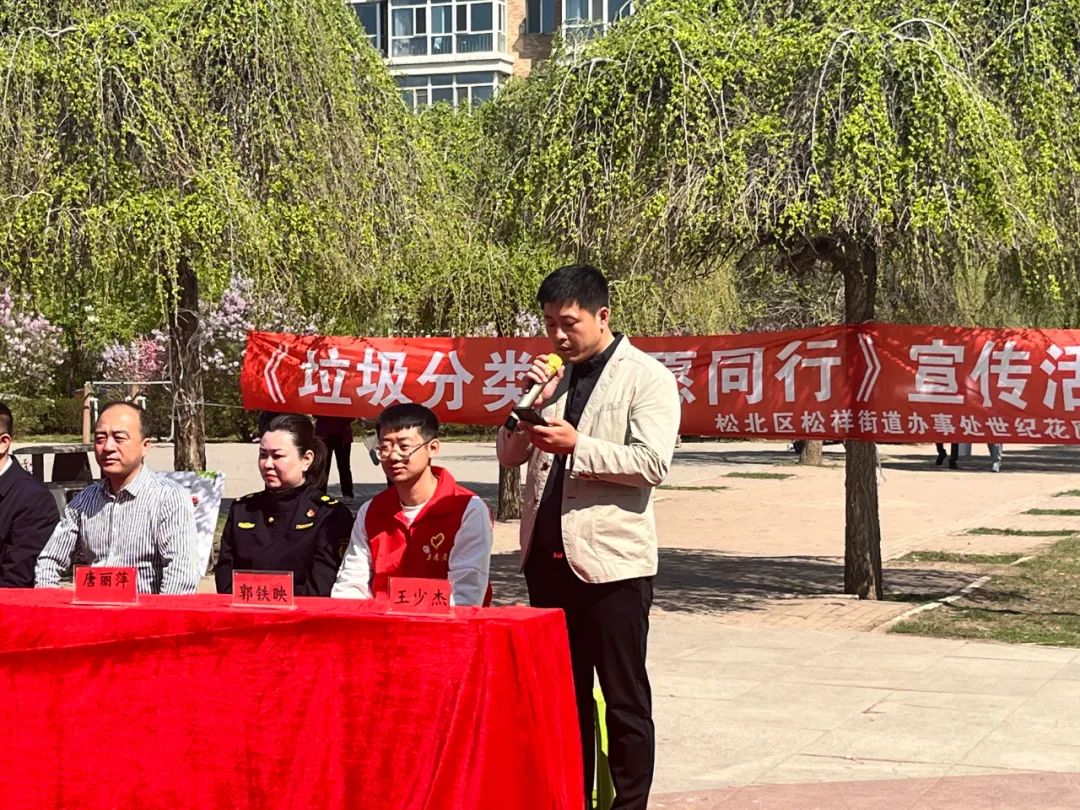 活動開場,松北區(qū)松祥街道辦事處世紀花園社區(qū)王少杰書記作了表態(tài)發(fā)言,作為垃圾分類監(jiān)督員、推廣員,要履行好自己的職責,做好垃圾分類工作。通過公益活動宣傳,要把垃圾分好類,為環(huán)境保護做出自己的貢獻。同時也呼吁各位居民朋友自覺分類投放垃圾,共同為社區(qū)的環(huán)境貢獻自己的一份力量。