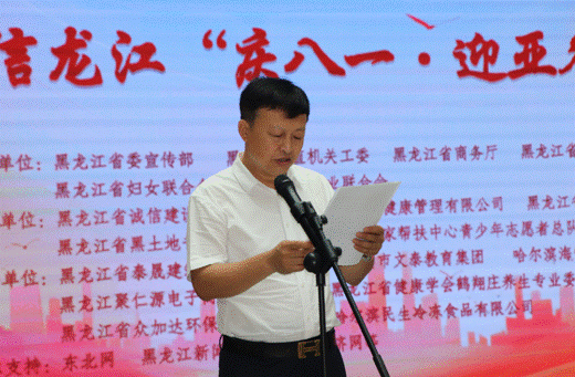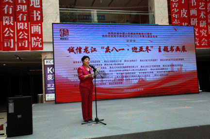 省直機關工委行業(yè)協(xié)會商會黨建工作部部長、全省性社會組織黨委專職副書記秦曉明致辭。他表示,相信通過這次活動的舉辦,將進一步激勵軍民同心,增強情感認同,深化同呼吸、共命運、心連心的軍民魚水情,營造擁軍優(yōu)屬、擁政愛民的濃厚社會氛圍。同時,以亞冬會為媒,以書畫展為平臺,充分展示文明尚禮、熱情自信的冰城風貌,領略龍江深厚的冰雪運動底蘊。