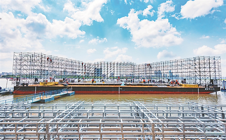 建設(shè)中的江上大舞臺(tái)。圖片由哈爾濱冰雪大世界股份有限公司提供