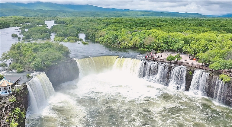 本報(bào)訊(趙虎影 記者  張雪地)“太壯觀了!今天看到了水勢(shì)浩大的鏡泊湖三面飛瀑景色,還有精彩的跳水、演藝活動(dòng),沒(méi)白來(lái)!”6月2日,游客在鏡泊湖景區(qū)游覽時(shí),連連點(diǎn)贊。