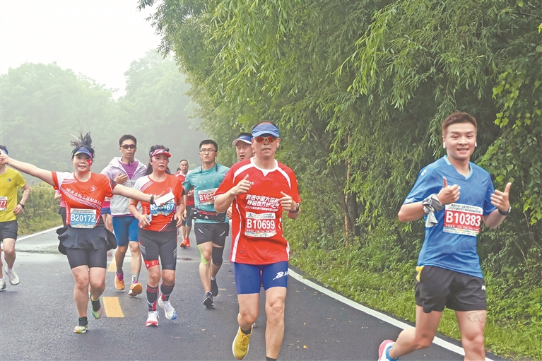 隨著發(fā)令槍響,7380名選手陸續(xù)沖出起跑線,從老山門出發(fā),途經(jīng)神龜石、月牙湖、長壽泉、丞相峰,遠眺南極仙翁,沿途領略北國森林的壯美風光,碧樹藍天相映成趣,盡顯生態(tài)魅力。賽道上,有沖鋒在前的資深跑者,有不甘落后的新人跑者,更有“以跑為樂”運動團體,以鏗鏘步履跑出一道道靚麗風景線。
