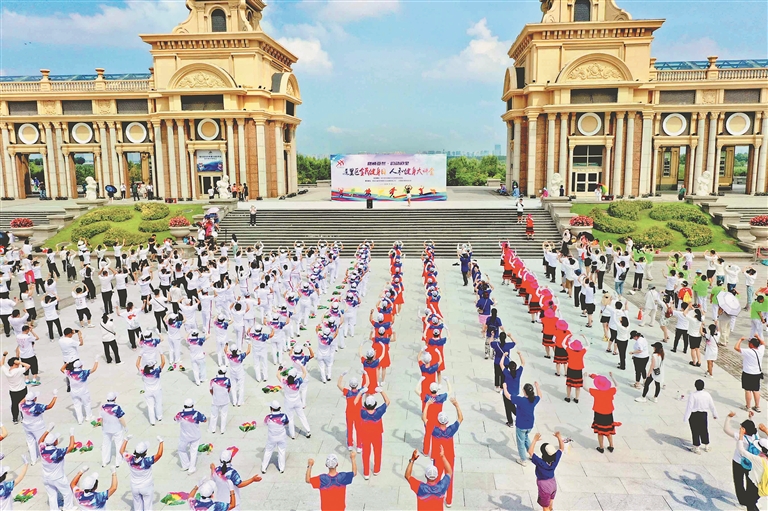 本報8日訊(記者  馬智博)為推廣全民健身運動,普及體育健身知識,傳播積極健康生活方式,為亞冬會到來營造濃厚社會氛圍,8日,哈爾濱市道里區(qū)在群力音樂長廊組織開展以“燃情亞冬‘韻’動道里”為主題的全民健身日活動,500余名健身愛好者參加活動。