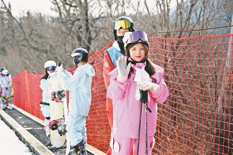在亞布力陽光度假村山頂滑雪場,來自南方的游客盡情陶醉在滑雪的樂趣中。本報記者 郭俊峰攝