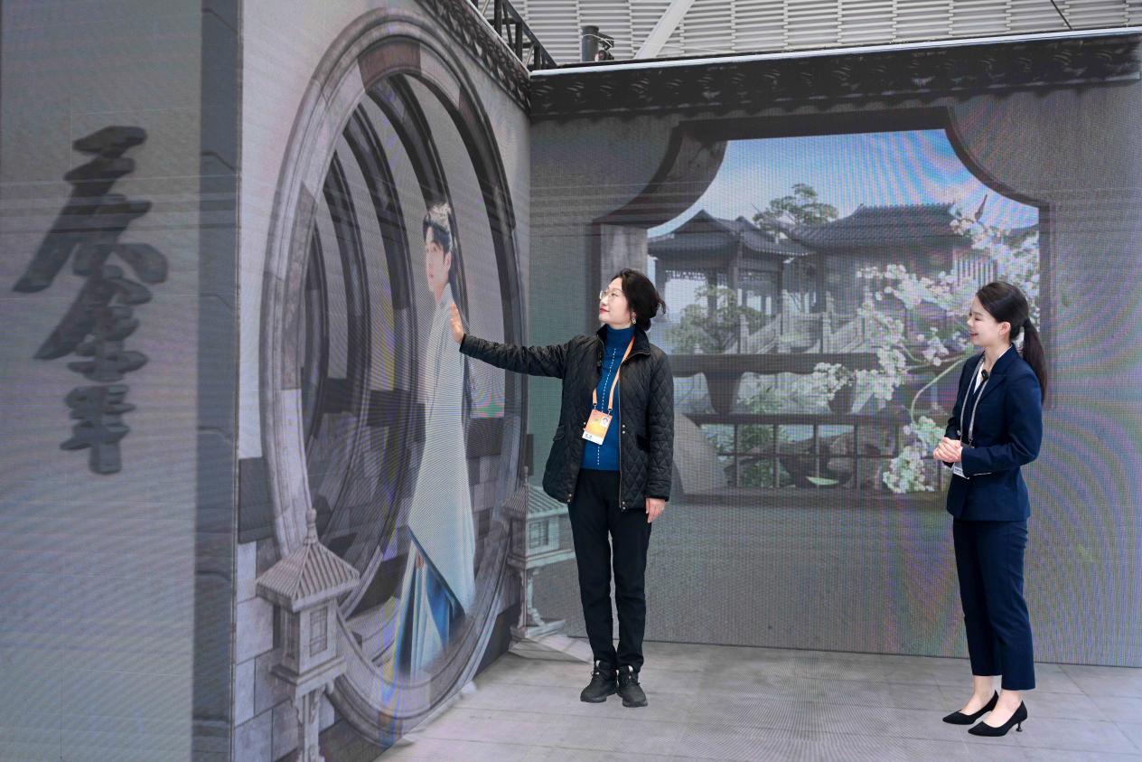 圖為參觀者在《慶余年》場(chǎng)景中合影