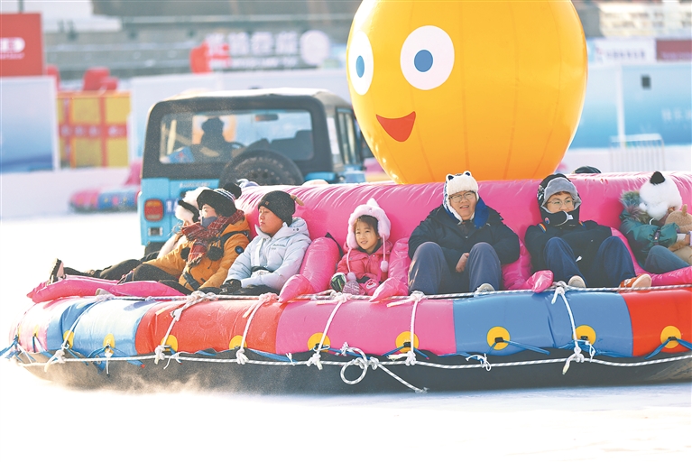 記者站在堤壩望向松花江面看到,江面被有序劃分為多片區(qū)域,每片區(qū)域都是一個(gè)歡樂場,游客可以體驗(yàn)“瘋狂八爪魚”、大滑梯、龐巴迪賽車、滑冰,乘坐馬車、冰雪龍舟游覽園區(qū),還可以走進(jìn)“馴鹿部落”體驗(yàn)喂食馴鹿的樂趣。同時(shí),熱飲屋、文創(chuàng)店、寄存處、餐飲店、防寒用品攤位等相關(guān)配套服務(wù)一應(yīng)俱全。
