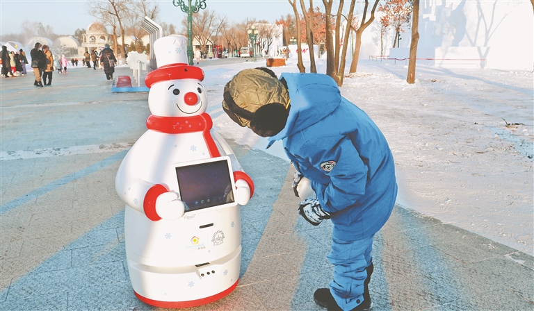 智能機器人堪稱 “冰雪萬事通”,游客想了解景區(qū)內(nèi)某個景觀景點情況,只要走到它面前,說出問題,僅需幾秒鐘,它便會用通俗易懂又趣味十足的話語答疑解惑,還不忘在胸前的大屏幕上亮出相關(guān)圖片,圖文并茂。