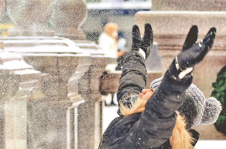 2月17日上午,哈爾濱市迎來降雪天氣。紛紛揚揚的雪花從天空中飄落,整座城市再次披上銀色的外衣,漫步其中如同進入一個童話世界。游客們在雪中拍照、游玩,盡享春雪帶來的樂趣。