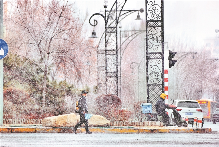 12日,我省多地降下陣雪。紛紛揚(yáng)揚(yáng)的雪花從空中飄落,將龍江大地裝點(diǎn)得非常美麗。