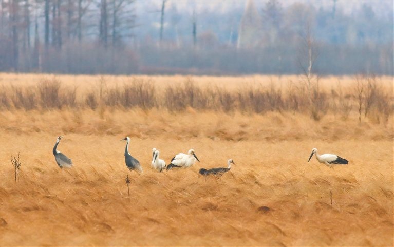 本報(bào)訊(陳辰 記者 賈紅路)日前,攝影愛好者在伊春市豐林縣新青國家濕地公園捕捉到令人興奮的一幕:三種“鳥中國寶”——國家一級(jí)重點(diǎn)保護(hù)野生動(dòng)物白頭鶴、白枕鶴和東方白鸛同框亮相,上演春日里的生態(tài)“大片”。