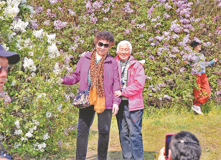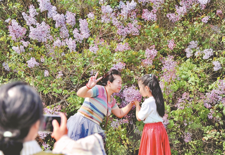 11日,陽光明媚,空氣清新。哈爾濱市群力丁香公園內(nèi),一片片丁香花已全部盛開,白色的、紅色的、紫色的,散發(fā)著迷人的香氣。很多市民和媽媽一起來賞花、拍照,以這種方式祝福母親節(jié)日快樂。
