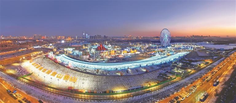 冰雪大世界主塔“冰燈啟夢”封頂