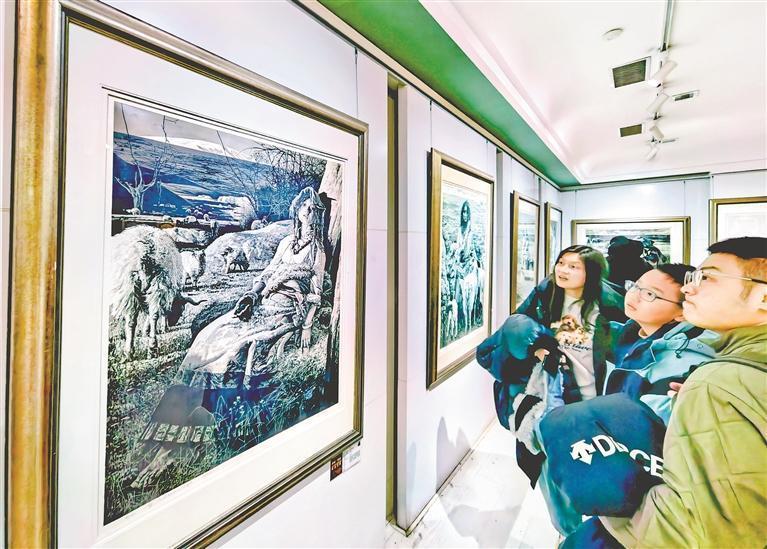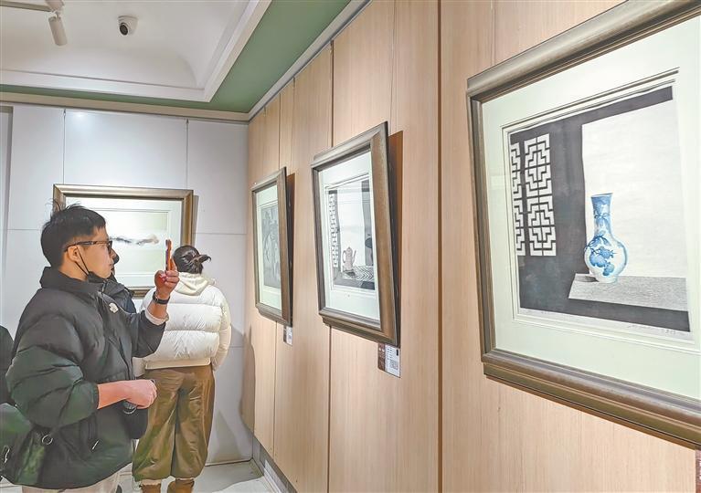 近日,位于哈爾濱市道外區(qū)的哈藥六版畫博物館內(nèi),游客們?cè)谡箯d里觀賞油畫、版畫,在走廊和大廳里打卡拍照發(fā)朋友圈。