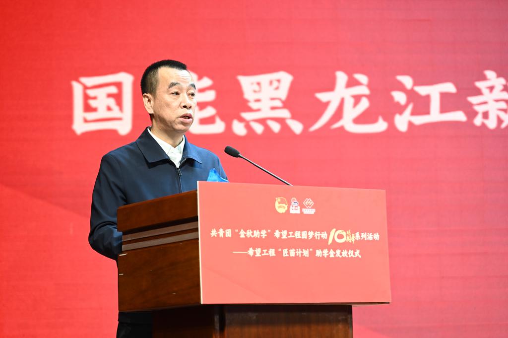 國能黑龍江新能源有限公司黨委書記、執(zhí)行董事遲鳳亮發(fā)言。他表示:“履行央企社會責任、傳遞社會溫暖是企業(yè)的初心與擔當,未來,國能黑龍江新能源有限公司將繼續(xù)踐行央企責任,一如既往地支持希望工程事業(yè),關(guān)注青年成長,與社會各界一道,共同為龍江全面振興全方位振興貢獻力量?!?/span>