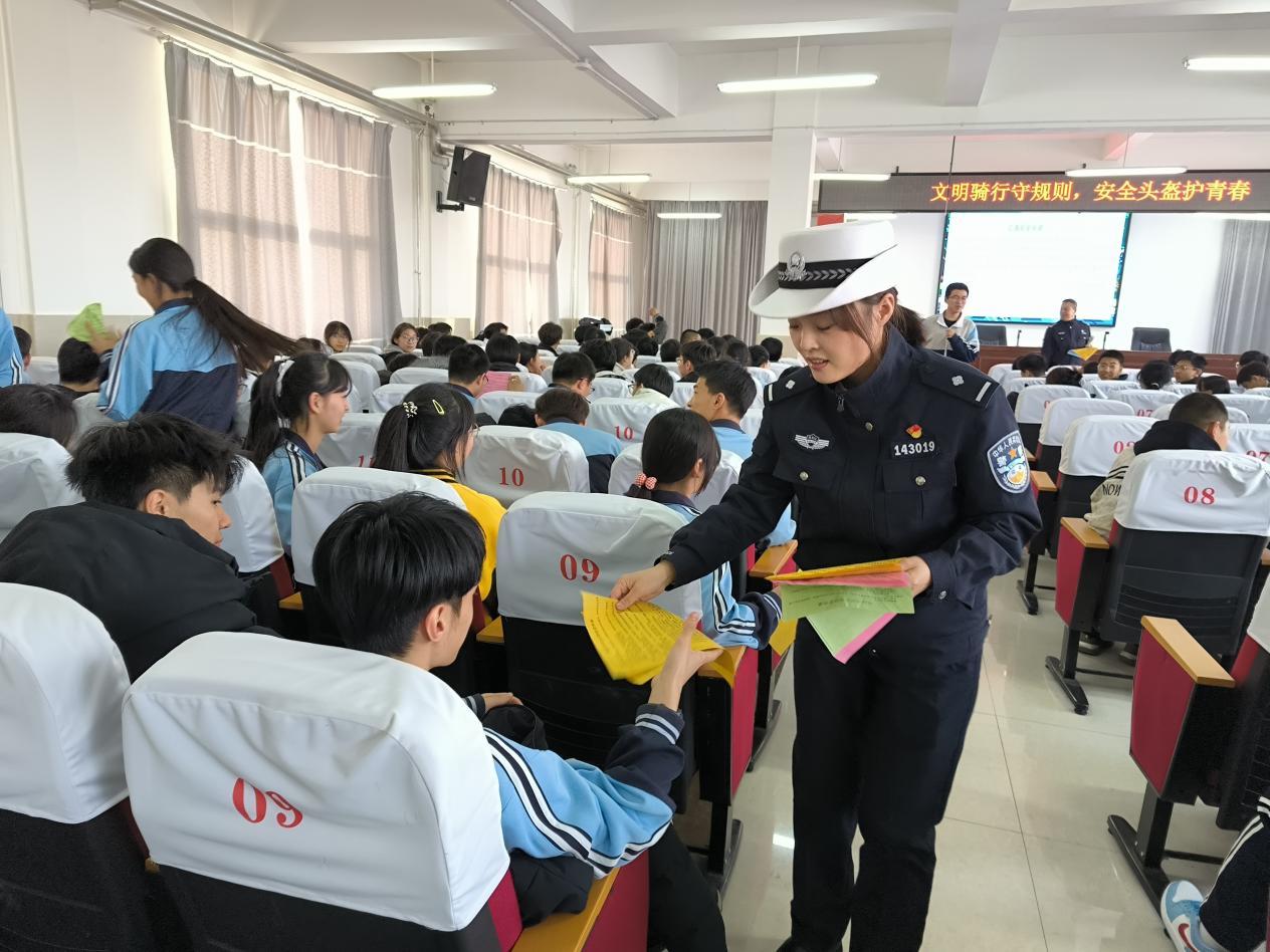 考慮到高中生群體的特點,且部分學生上下學有騎行電動自行車的需求,在宣講現(xiàn)場,民警用通俗易懂的語言、貼近校園周邊的案例,圍繞電動自行車駕乘安全這一核心,展開交通安全知識講解。并通過播放典型事故案例視頻,以案說法,直觀展示了未佩戴頭盔在發(fā)生碰撞時頭部遭受致命傷害的慘痛后果,以及多人合乘一輛車、追逐打鬧等行為帶來的失控風險。活動現(xiàn)場還設(shè)置了互動問答環(huán)節(jié),同學們踴躍參與,在輕松氛圍中鞏固了“知危險、會避險”的交通安全知識。