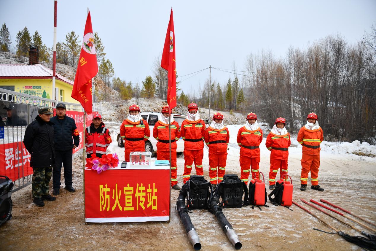 新林林業(yè)局宏圖林場在入山口設(shè)立防火檢查站(李楊 攝)