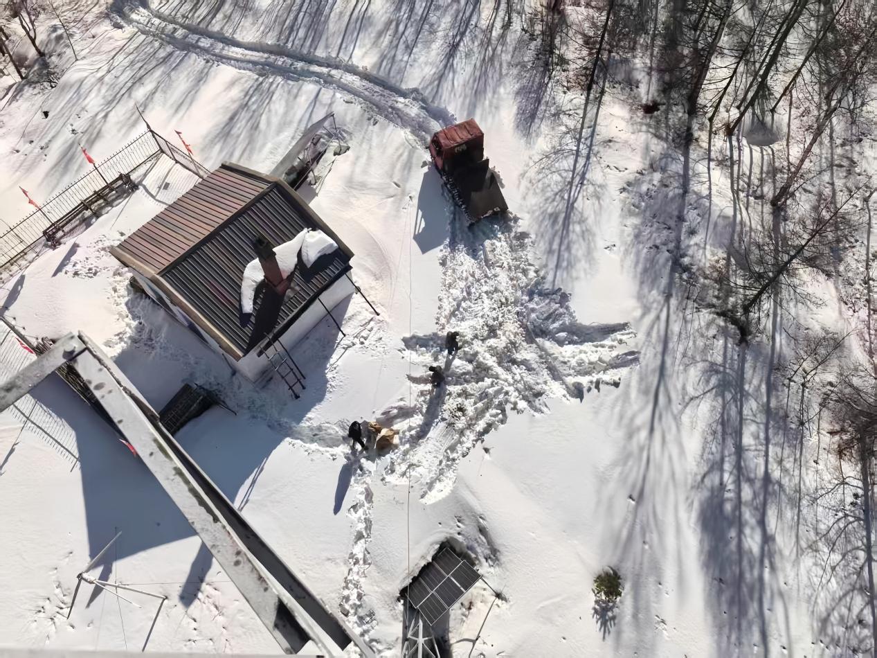 瞭望塔是林區(qū)火情監(jiān)測的“千里眼”,其完好程度直接關(guān)系到火險監(jiān)測的及時性和準(zhǔn)確性。受前期降雪影響,施業(yè)區(qū)積雪厚達(dá)半米,車輛無法正常通行,給維修工作帶來極大阻礙。為確保檢修工作順利推進(jìn),林場啟用集材50運輸車開辟雪中通道。工作人員抵達(dá)塔位后,迅速清理塔梯冰層,細(xì)致檢查塔身牢固性,對電臺通訊信號進(jìn)行反復(fù)測試校準(zhǔn)。零下十幾度的嚴(yán)寒中,工作人員摘下手套操作僅幾分鐘,手指便凍得失去知覺,大家輪換著取暖、交替作業(yè),經(jīng)過一整天連續(xù)奮戰(zhàn),順利完成全部維修任務(wù),瞭望塔恢復(fù)完好狀態(tài),全面具備春季防火使用條件。